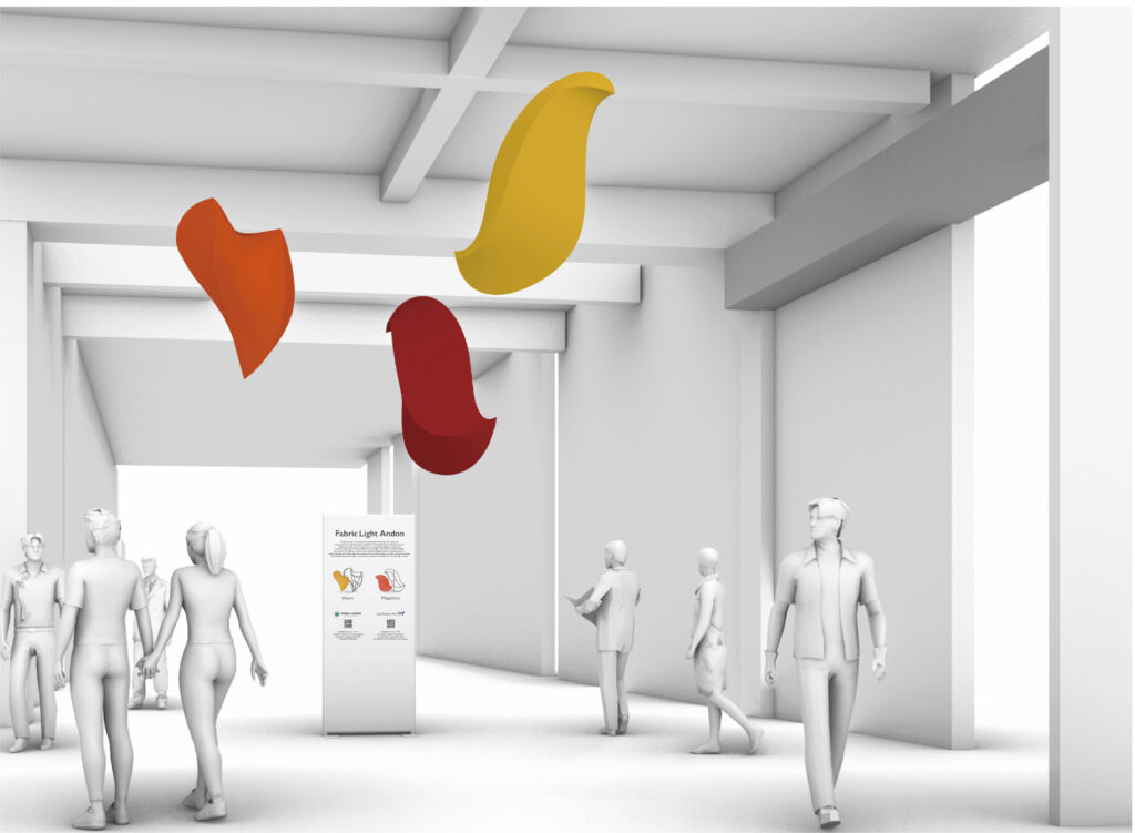 Fabric Light Andon è un apparecchio di illuminazione che si ispira alle tradizionali e antiche lanterne giapponesi rivestite di carta “Andon”, che significa lanterna o, semplicemente, luce. Mentre la maggior parte delle lanterne tradizionali sono fatte di legno e carta washi (carta di gelso) per essere in armonia con l’ambiente delle case giapponesi e hanno una debole luce soffusa, la Fabric Light Andon è invece realizzata con tubi di alluminio cavo all’interno e tessuto, combinati con LED che, grazie sistema Onefabrica, le rende in grado di illuminare un’intera stanza di una luce brillante. La struttura è talmente leggera che le tre scultoree versioni presentate fluttuano sospese ad un unico filo sui visitatori che fanno il proprio ingresso nelle sale dell’evento.